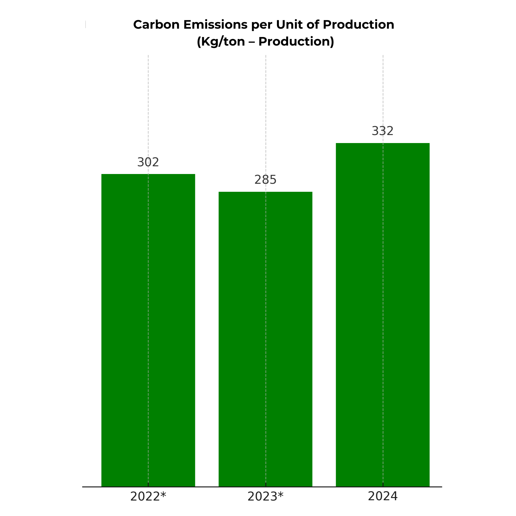 | Carbon Emissions per Ton (kg CO2e) | 303 | 280 | 331 |